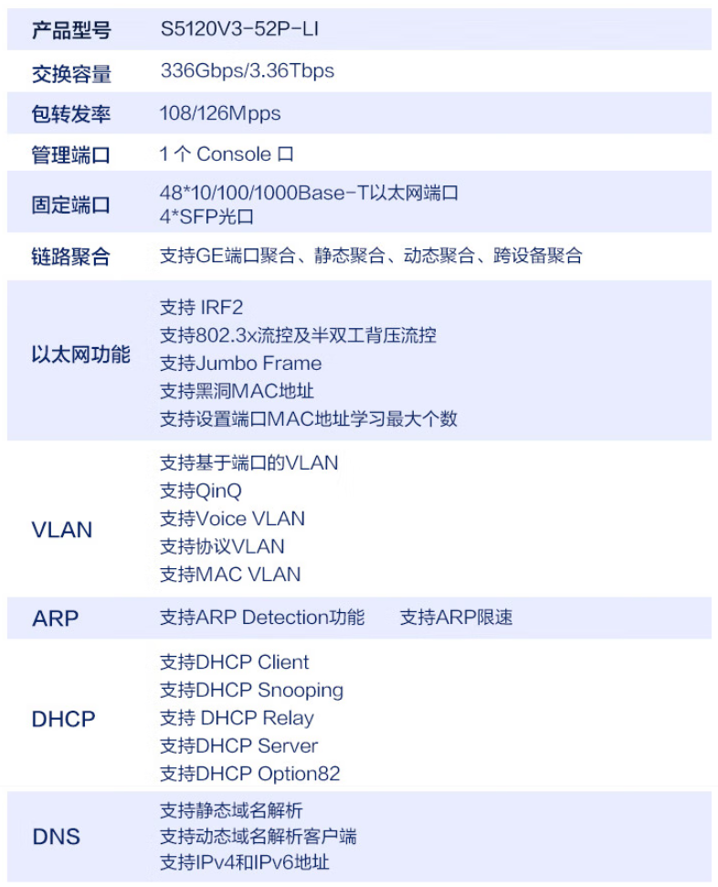 參數(shù) [品牌] H3C [型號(hào)] S5120V3-52P-LI